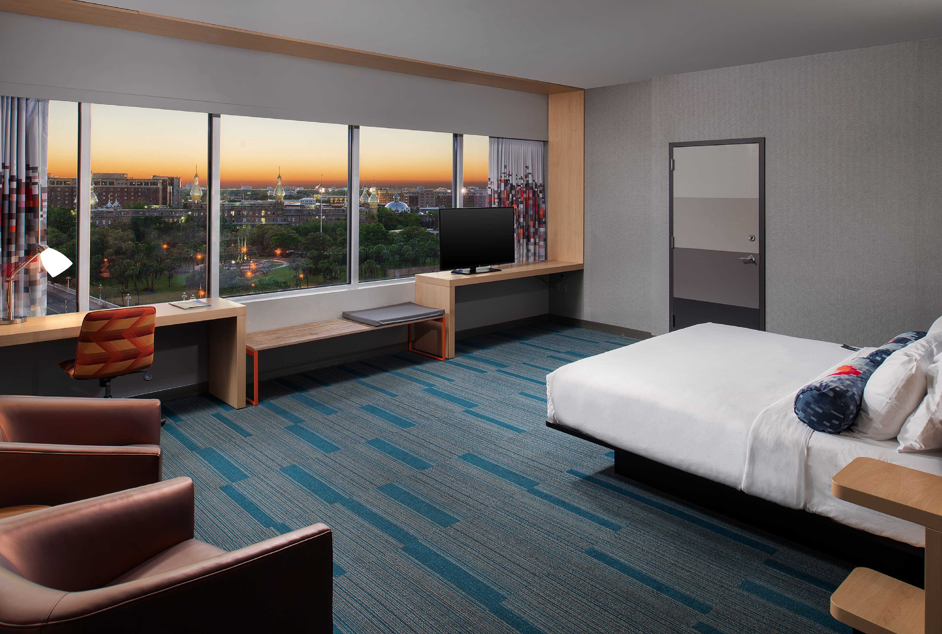 Celebrate your style at Aloft Tampa Downtown, a hip new hotel that’s steps from museums, parks, restaurants, nightlife, sports, and shopping. We offer easy-breezy access to the Riverwalk, the Tampa Convention Center, and the Benchmark International Arena. Breeze into one of our Aloft rooms, featuring our ultra-comfortable signature bed, walk-in shower, custom amenities by Bliss® Spa, and more. Our plug & play connectivity station charges all your electronics and links to the 42” LCD TV to maximize work and play. Meet & mingle with friends at our w xyz(SM) bar, grab a sweet, savory, or healthy snack from re:fuel by Aloft(SM), our 24/7 pantry, or play in our re:mix(SM) lounge. Plus, you can always stay connected with free hotel-wide wired and wireless High Speed Internet Access!